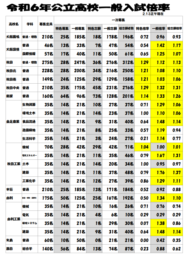 ですので、今回の横手高校を受験するお子さんたちは非常に良い経験ができると思っております。中央地区の進学校は倍率も軒並み高く、やはり人口が多いところはこのような意味で良い人材が育つ環境にあるんだな、、、と残念ながら思います。